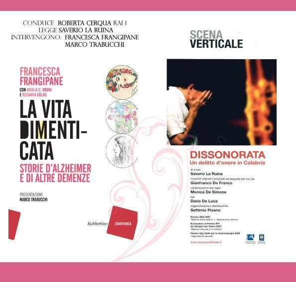 A seguito del Convegno, organizzato dal Centro Regionale di Neurogenetica “Assistenza ai pazienti con demenza: il Chronic Care Model, esempio replicabile di sanità di iniziativa”, la presentazione del libro della dottoressa Francesca Frangipane “La vita dimenticata” le cui storie verranno raccontate dal maestro Saverio La Ruina che regalerà, inoltre, la sua pièce teatrale “Dissonorata”